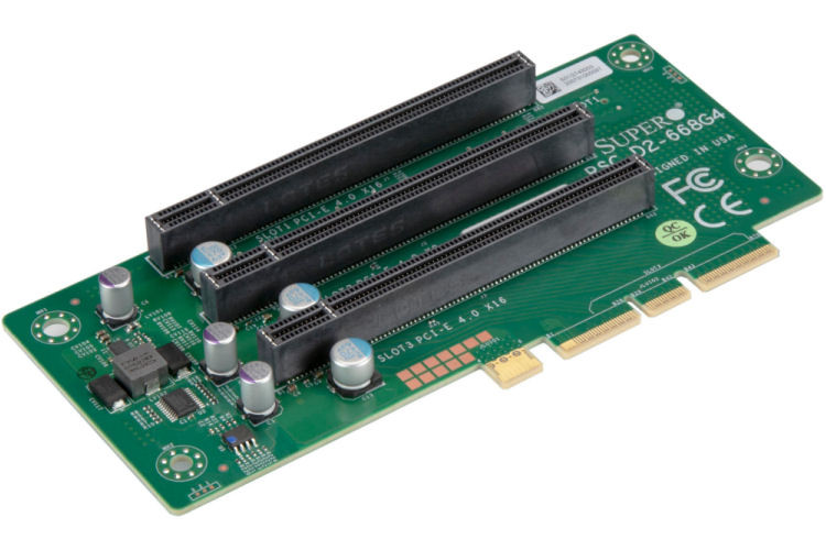 Passive Riser Card Provide 2 x PCI Express 4.0 x16, 1 x PCI Express x8, Slot Position: Left-hand side, Supports Gen 3 and 4, Designed for 2U CloudDC SuperServer