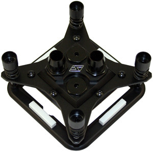 The base-plate is precision-machined from C110 copper. Thermal design of the cooling engine is characterized by Swiftech's fin/pin matrix composed of 225 µm (0.009") micro structures; the matrix has been further refined with variable width cross channels to improve flow rate without affecting thermal efficiency, and fabrication quality has also been enhanced to reduce micro machining imperfections. |