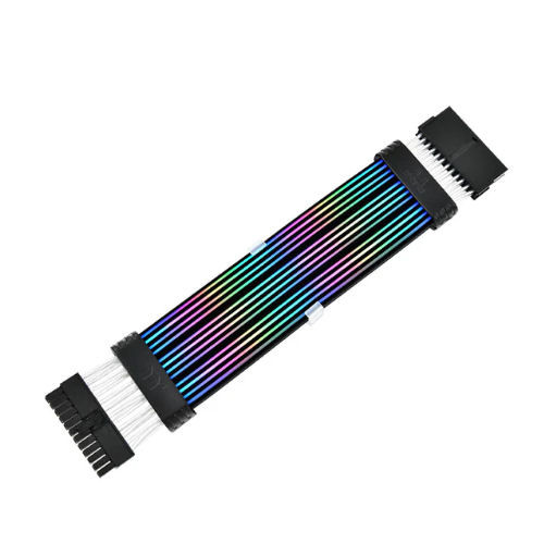 The Tt Mod 24 pin ARGB Cable, Illuminated Extension Cable, features a transparent LED tube, delivering a stylish illumination that seamlessly complements any PC chassis interior.