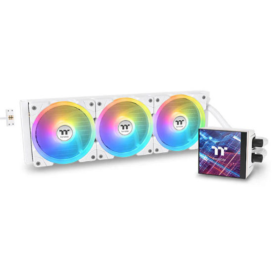 Loading... Please wait...The MAGFloe 420 Ultra ARGB Sync Snow Edition features a large 3.95” square LCD display that presents clear, vivid visuals and allows the use of AI Forge via the TT RGB PLUS 3.0 software and instant customization through the TT PlayLink mobile app on smartphones. This AIO liquid cooler comes with SWAFAN EX White fans, which boast the MAGForce 2.0 Quick Connection Design and Swappable Fan Blade Design, elevating aesthetics by reducing cable clutter and fully showcasing dual-ring RGB lighting in different airflow directions.